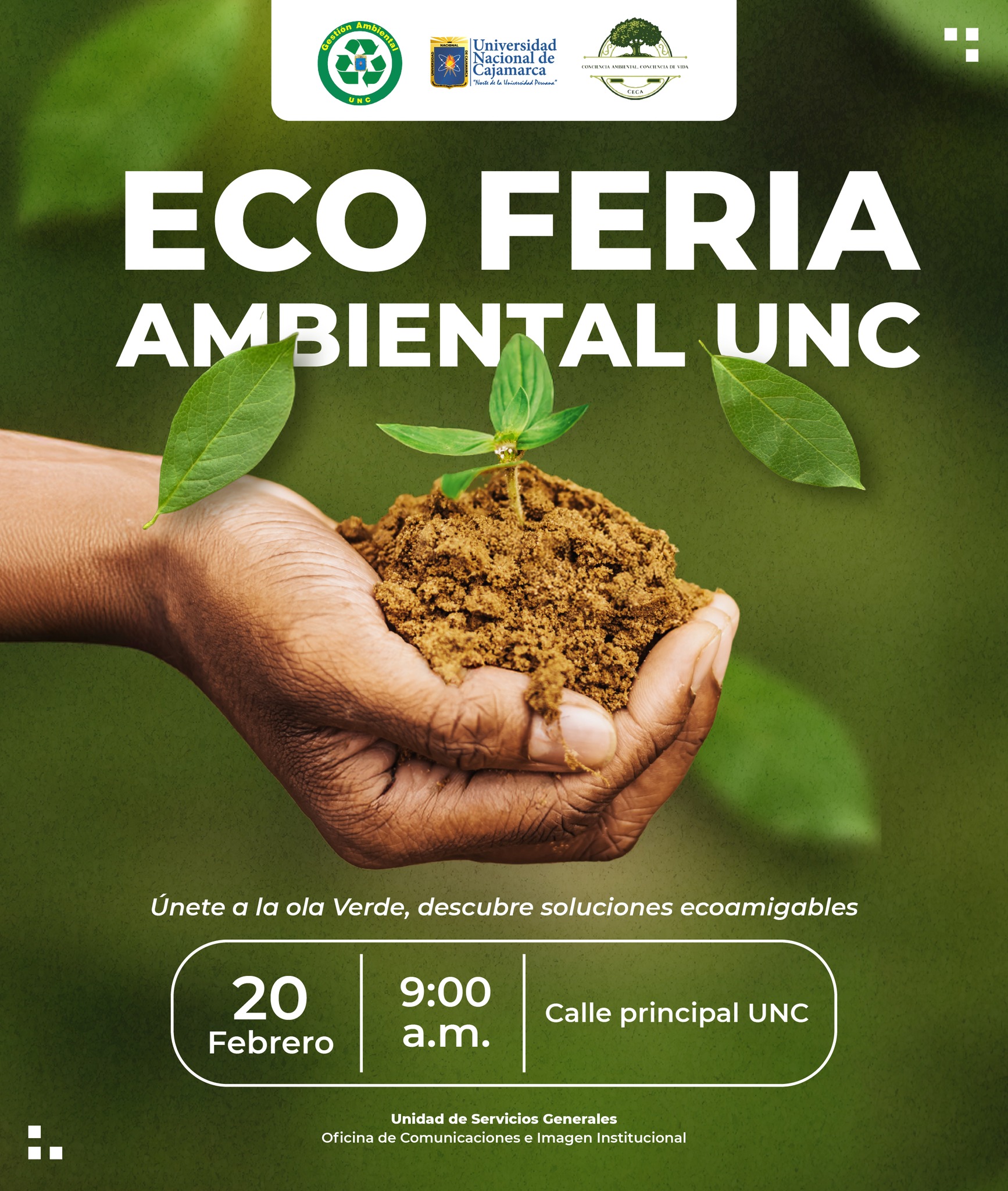 La Universidad Nacional de Cajamarca a través de la Unidad de Servicios Generales, junto al grupo de conciencia ambiental de la Facultad de Ciencias Económicas, Contables y Administrativas (CECA), realiza la Eco Feria Ambiental UNC, un espacio para promover proyectos comprometidos con el cuidado del medio ambiente y la mitigación de la contaminación del aire, agua y suelo.